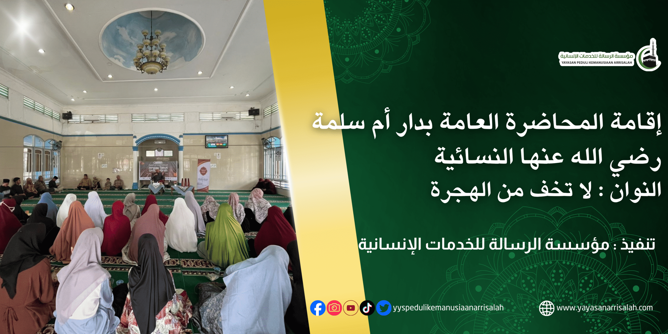 في إطار الأنشطة الدعوية النسائية الهادفة إلى غرس القيم الإيمانية وتعزيز الوعي الديني، أقيمت ـ بفضل الله تعالى وتوفيقه ـ المحاضرة العامة بدار أم سلمة رضي الله عنها النسائية في محافظة باتو بارا، وذلك يوم الأحد ٢٧ ربيع الآخر ١٤٤٧ هـ، تحت إشراف قسم الدعوة النسائية بمؤسسة الرسالة للخدمات الإنسانية.