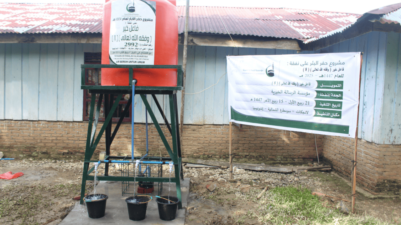 الحمد لله الذي بنعمته تتم الصالحات، تم بحمد الله افتتاح البئر الوقفي رقم (2992) الذي تشرف على تنفيذه مؤسسة الرسالة الخيرية، وذلك في حي 8B – قرية مكار ساويت – منطقة ساويت سبرانغ – محافظة لانكات، في إطار مشاريعها الإنسانية الهادفة لتوفير المياه الصالحة للشرب في القرى المحتاجة بجزيرة سومطرة – إندونيسيا.