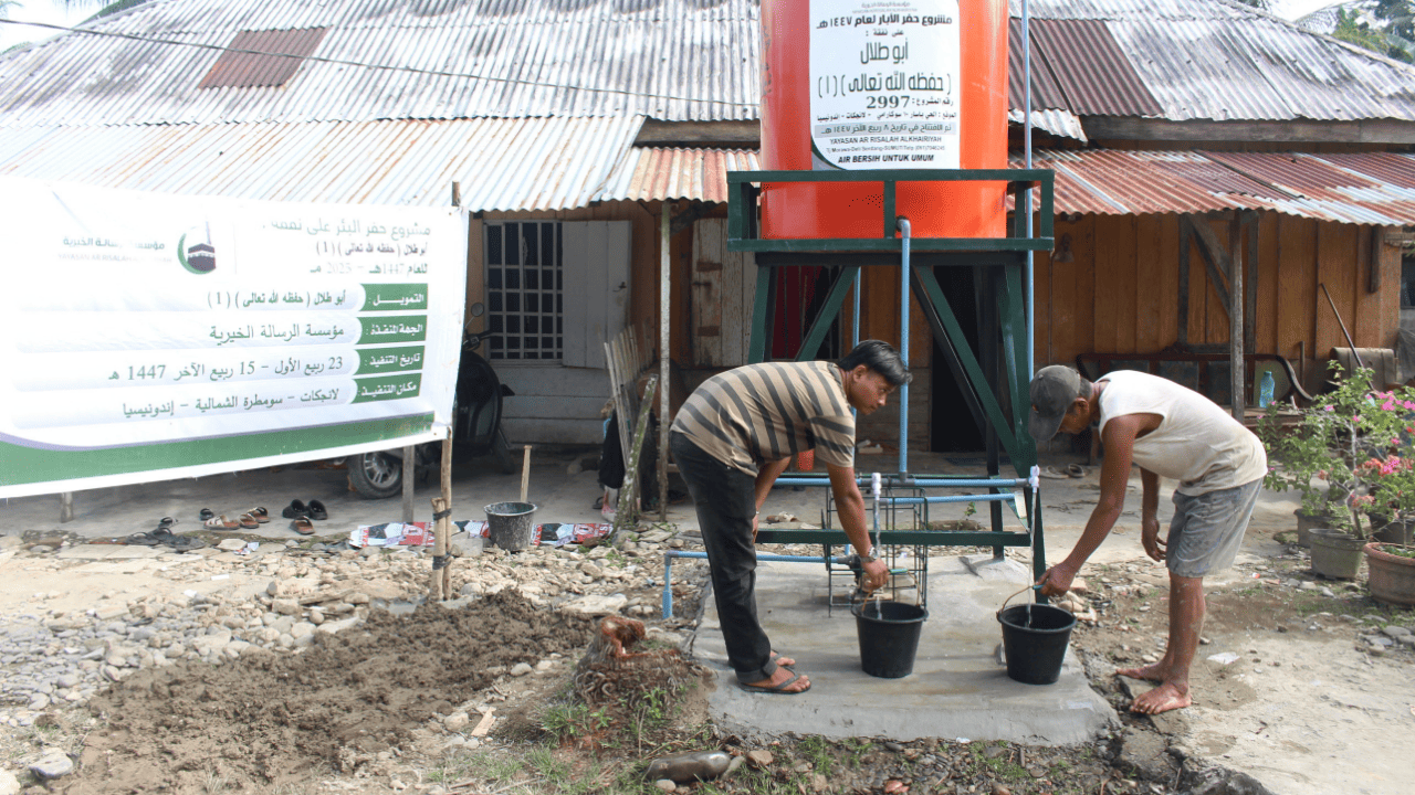 في إطار برنامجها الإنساني المستمر لتوفير المياه الصالحة للشرب في المناطق المحتاجة، أعلنت مؤسسة الرسالة للخدمات الإنسانية عن افتتاح بئر رقم (2997) في حي بسار 10، ديسا سوكا رمـاي، بادانغ تـوالانغ، كابوباطن لانكـات.