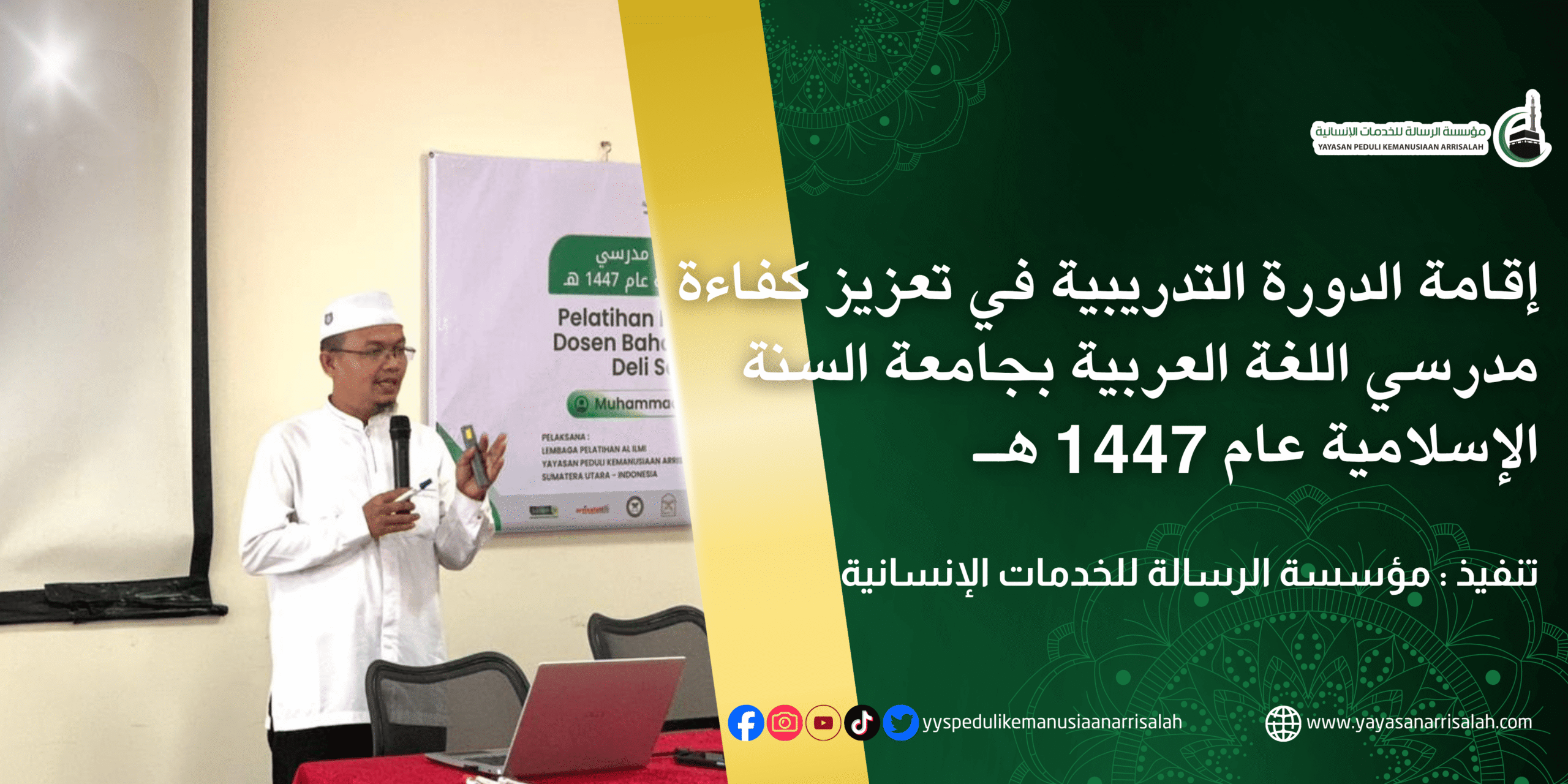 في إطار سعيها لتطوير الكفاءات الأكاديمية وتعزيز جودة التعليم، نُظّمت الدورة التدريبية في تعزيز كفاءة مدرّسي اللغة العربية بجامعة السنة الإسلامية – دلي سِردانج لعام 1447 هـ / 2025 م، بعنوان:
