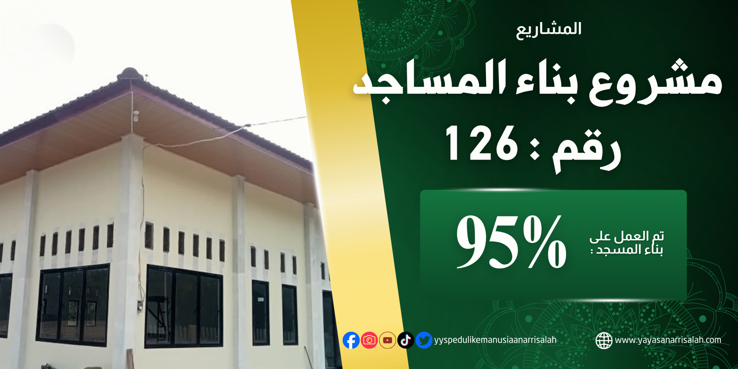 وفي هذا الإطار، يجري العمل حاليًا في بناء المسجد رقم (126) الذي يحمل اسم الصحابي الجليل أسعد بن زرارة رضي الله عنه، في قرية بانتي ثيرمين – منطقة تافونج – محافظة كامبار رياو.